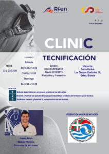 El Club Natación Menditxo ha estado presente en los dos Clínics de Tecnificación organizados por el Área Deportiva de Natación de la RFEN en colaboracion con la EIF-FVN, que se celebraron el 22 y 23 de marzo de 2025 en la piscina del Polideportivo Fadura de Getxo para deportistas y técnicos de Euskadi.