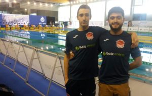 Aitor con su entrenador Joan en la Piscina Rias do Sur