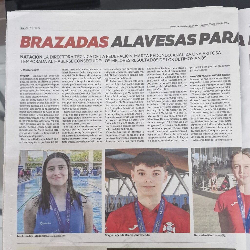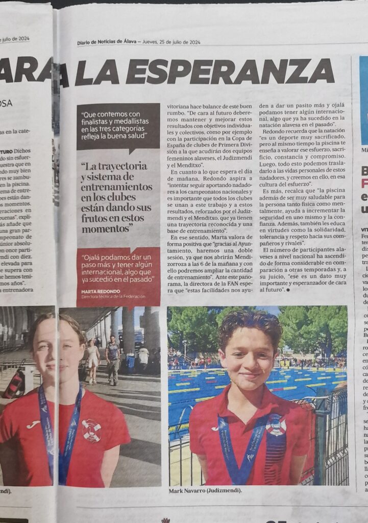Inolvidable Campeonato para nuestro Equipo Absoluto y Junior el vivido en la piscina Son Hugo de Palma de Mallorca en el Campeonato de España Junior y Absoluto Olympic Trials-París 2024, celebrado del 18 al 22 de junio. Noticia Diario de Noticias de Álava